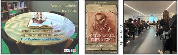 No âmbito de um projeto interdisciplinar dos alunos do 10.º ano dos Cursos de Línguas e Humanidades, a autora Isabel Rio Novo compareceu, no dia 5 de fevereiro de 2025, na Escola Secundária Carlos Amarante para falar sobre a história de Luís de Camões e da sua obra.
